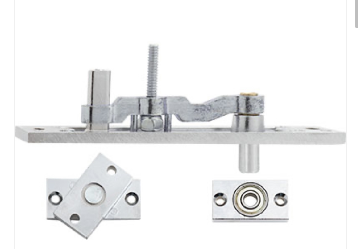 Material: Zamac com rolamento em aço Pivôs com regulagem de distância Carga limite: 100 kg Utilização: Portas Pivotantes