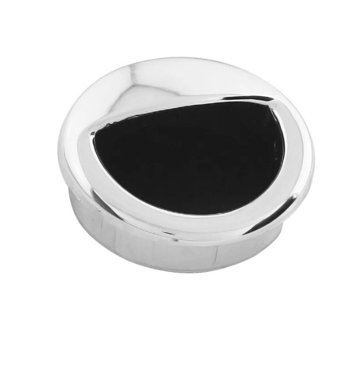 O puxador concha cromado da Gecele é confeccionado em plástico. Tem formato redondo com abertura, facilitando a limpeza sem deixar de lado um acabamento moderno e clean para o móvel.